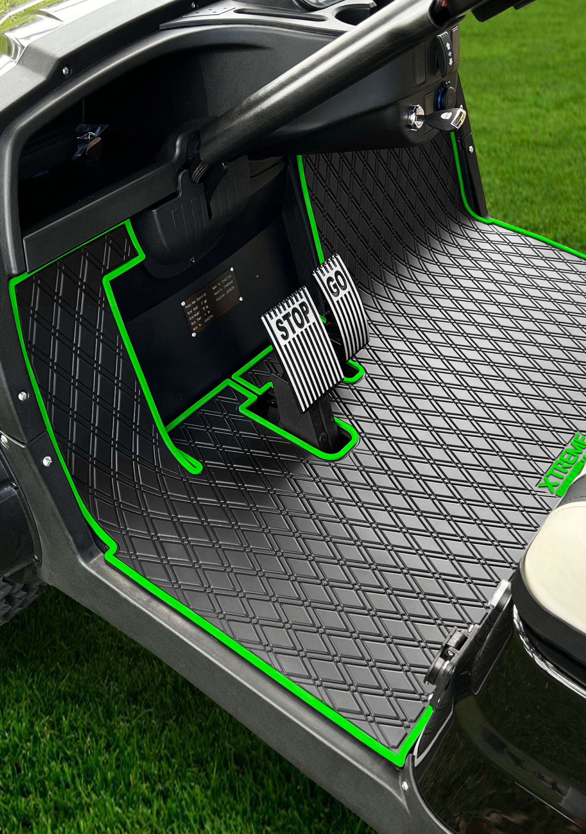 Xtreme Mats New PRO Series Mats are constructed with a professional grade material that feels and fits like OEM flooring for improved resistance to scratching and fading with a reinforced color trim for increased longevity. Xtreme Mats believes you shouldn’t have to compromise function for style; our golf cart floor mats offer both.